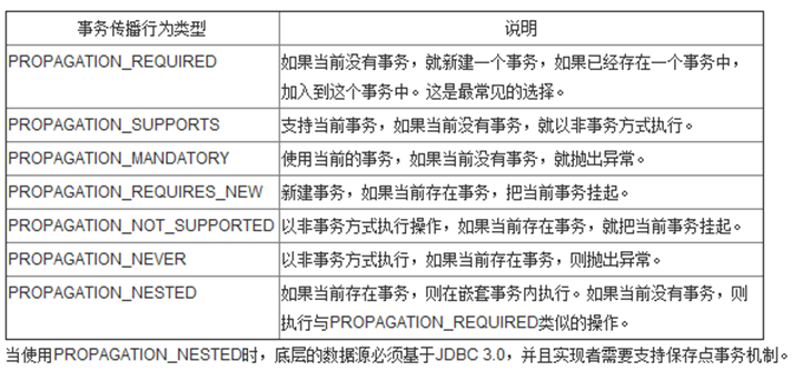 经常用spring,以前习惯了copy复制其实有时候有些东西自己没有去真正了解,就拿spring的事务注解来讲,深入了解后才会清楚有些时候需要用那种配置.Spring2.x-3.x事务传播行为类型如下图: