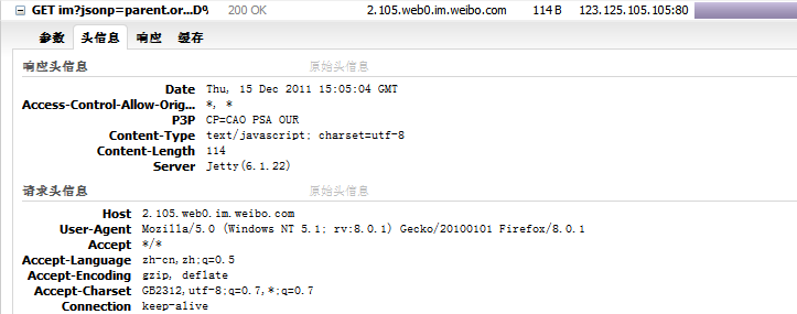 从头信息可以看出新浪微博也不得不使用jetty作为消息服务器发送即时消息