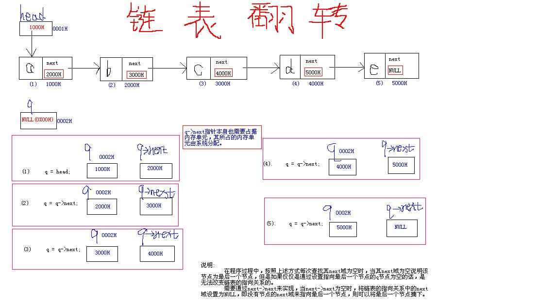 #include <stdio.h> #include <malloc.h> #include <string.h> #include <ctype.h>#include <process.h> /************************************************************************ * Name :linked_list(单链表) * Author :luchunli * Date :2012-03-20 * Description :对链表的基本操作,如链表的创建、查找、插入、删除、翻转等 * Environment:Turbo C/C++ for windows集成实验域学习环境2007.5 * Functions:void help (void) *void print (const struct node * head) *int getNo (void) *int isExists (struct node * q, int no) *struct node * create (struct node * head) *void queryByNo (const struct node * head) *void queryByName (const struct node * head) * struct node * insert (struct node * head) * struct node * delete (struct node * head) * struct node * reverse (struct node * head) * ---------------------------------- * TimeModifierComment * 2012/03/22luchunli容错处理和功能扩展(链表翻转) * *************************************************************************/#define TRUE 1#define FALSE 0static const int ZERO = 0;/** 声明一个结构体,名称为node*/struct node {int no;char name[20];struct node * next;};/*** Author : luchunli* Description : 帮助* Date : 2012-03-22*/void help (void) {printf("1、新建链表(create)\n");printf("2、根据编号查找(q_by_no)\n");printf("3、根据名称查找(q_by_name)\n");printf("4、插入指定编号的节点(insert)\n");printf("5、删除指定编号的节点(delete)\n");printf("6、链表翻转(reverse)\n");printf("7、查看链表节点数据(print)\n");printf("8、清除屏幕显示(clear)\n");printf("9、退出系统(exit)\n");printf("10、帮助信息(?)\n");}/*** Author : luchunli* Date : 2012-03-21* Description : 打印链表的数据*/void print (const struct node * head) {struct node * q = head;/**/while(NULL != q) {printf("no is %d and name is '%s'.\n", q->no, q->name);q = q->next;}}/*** Author : luchunli* Date : 2012-03-20* Description : 获取编号(执行校验或得到一个有效的编号)* 关于scanf函数返回值的问题:1、若函数中只存在一种输入,即scanf("%d", &m),如果输入成功返回值为1,不成功返回值为0;2、若函数中存在多种输入,即scanf("%d %d %d", &m, &n, &k),如果输入的数据a为整数,b、c为无效数据,则返回1;如果输入的数据a、b为整数,c为无效数据,则返回2;如果输入的数据a、b、c均为整数,则返回3;如果a、b、c均为无效数据,则返回0。问题一:当我们执行scanf("%d", &m),但是如果我的输入为非数字的话(如一个字符),则会出现刷屏现象,即屏幕不停的滚动,这是因为%d不能接收的缘故。解决方式:使用k = scanf("%d", &m);然后判断k的值问题二:使用上述方式可以解决刷屏问题,但是当前输入的字符会影响下次的输入,因为键盘缓冲区就可能还有残余信息。解决方式:使用fflush(stdin);刷新缓冲区,可以清理掉标准输入流中的缓存数据;同理,标准输出流为stdout。扩展:scanf()函数应该只是扫描stdin流。问题三:使用scanf("%c", &c);时\n和\w等都会赋值给字符c */int getNo (void) {int no = ZERO;while(!scanf("%d", &no) || no < ZERO) {/*保证输入的是有效的整数(而非字符或负数)*/fflush(stdin);/*刷新缓冲区*/printf("编号输入错误,请输入编号(整数(1~65535)):");}return no;}/*** Author : luchunli* Date : 2012-03-20* Description : 判定指定编号的节点是否已存在*/int isExists (struct node * q, int no) {while(q) {if (q->no == no) {return TRUE;}q = q->next;}return FALSE;}/*** Author : luchunli* Date : 2012-03-21* Description : 新建链表* 现在暂未使用该种创建链表的方式,因为这种方式在创建时每次都在最后添加新的节点,而不是根据编号的大小来创建有序的链表,详见insert()方法。*/struct node * create (struct node * head) {/*定义局部结构体类型的变量*/struct node * p = NULL;struct node * q = NULL;/*定义局部整形变量*/int no = 0;/*获取编号*/printf("请输入节点编号(输入0表示结束):");no = getNo();while (ZERO != no) {p = (struct node *)malloc(sizeof(struct node));if (NULL == p) {printf("内存空间不足,分配失败!");exit(1);}/**/p->no = no;printf("请输入编号 %d 处的名称:", p->no);scanf("%s", p->name);printf("\n");/*每次有新的节点时都链接到链表的末尾*/if (NULL == head) {head = p;} else {q->next = p;}q = p;q->next = NULL;/**//**/printf("请继续输入编号(输入0表示结束):");no = getNo();while(isExists(head, no)) {printf("编号已存在,请重新输入:");no = getNo();}}printf("\n");return head;}/*** Author : luchunli* Date : 2012-03-20* Description : 从链表中查找特定编号的节点*/void queryByNo (const struct node * head) {struct node * q = NULL;int no = ZERO;printf("请输入查找的节点编号(输入0表示结束):");no = getNo();while (ZERO != no) {q = head; /*必须的*/while(NULL != q) {if (q->no == no) {printf("编号为 %d 处的节点名称为:%s\n", q->no, q->name);break;}q = q->next;}if (NULL == q) {/*找到链表最后都没有找到该编号的节点*/printf("编号为 %d 的节点不存在.\n", no);}/**/printf("请继续输入查找的节点编号(输入0表示结束):");no = getNo();}printf("\n");}/*** Author : luchunli* Date : 2012-03-20* Description : 从链表中查找特定名称的节点*/void queryByName (const struct node * head) {struct node * q = NULL;char name[20] = {'\0'};int flag = ZERO;printf("请输入查找的节点名称(输入0表示结束):");scanf("%s", name);while(ZERO != strcmp(name, "0")) {/*相等返回0,结束while循环*/q = head; /*必须的*/flag = 0;while(NULL != q) {if (0 == strcmp(name, q->name)) {printf("名称为 %s 处的节点为:%d\n", q->name, q->no);if (!flag) {flag = 1;/*找到了*/}/*可能不同编号的节点有相同的名称*//*break;*/}q = q->next;}if (!flag) {printf("名称为 %s 的节点不存在.\n", name);}/**/printf("请输入继续查找的节点的名称(输入0表示结束):")