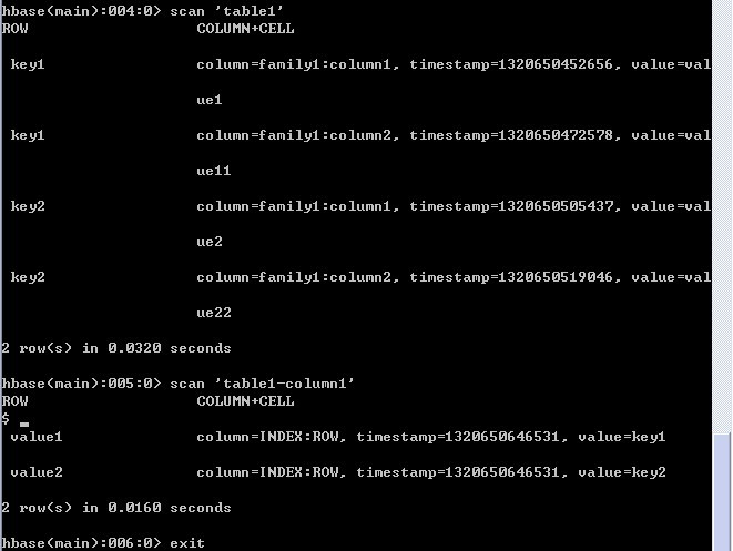 bin/hadoop IndexBuilder.jar IndexBuilder 'table1' 'family1' 'column1'