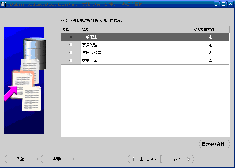 (3)单击“下一步”按钮,出现“数据库模板”窗口,如图3: