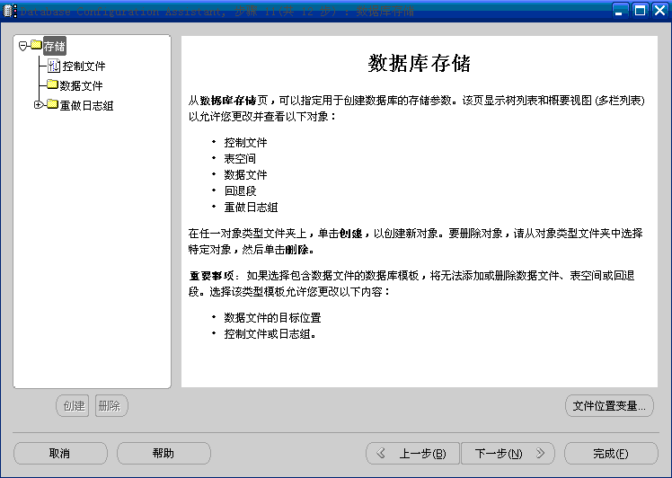 (12)单击“下一步”按钮,出现“数据库存储”窗口,如图12:
