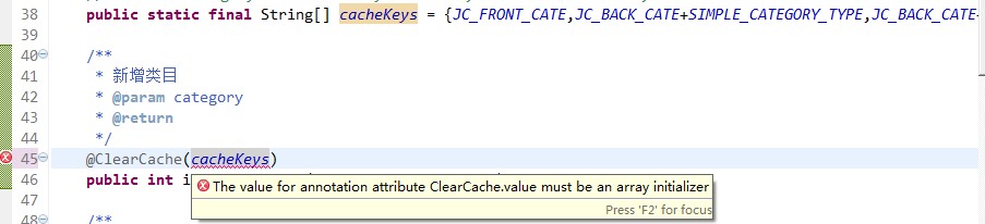 /** * 新增类目 * @param category * @return */@ClearCache({JC_FRONT_CATE,JC_BACK_CATE+SIMPLE_CATEGORY_TYPE,JC_BACK_CATE+LIFE_CATEGORY_TYPE})public int insertCategory(JuCategoryDO category) throws DAOException;