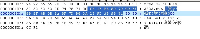 然后保存一个 commit树,同样像上面保存文件一样保存到Objects中,这个树文件解压后用ue打开如下图: