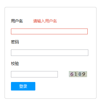 <!DOCTYPE html PUBLIC "-//W3C//DTD XHTML 1.0 Transitional//EN" "http://www.w3.org/TR/xhtml1/DTD/xhtml1-transitional.dtd"><html xmlns="http://www.w3.org/1999/xhtml"><head><meta http-equiv="Content-Type" content="text/html; charset=utf-8" /><link rel="stylesheet" type="text/css" href="css/login.css" /><script type="text/javascript" src="js/jquery.js"></script><script type="text/javascript" src="js/login.js"></script><title>用户登录</title></head><body> <div id="sign_in"> <form action="" method="post"> <label for="username">用户名</label> <p id="info1">请输入用户名</p> <input type="text" id="username" name="username" tabindex="1"/> <label for="password">密码</label> <p id="info2">请输入密码</p> <input type="password" id="password" name="password" tabindex="2" /> <button type="submit" id="submit" name="submit" tabindex="3">登录</button> </form> </div></body></html>