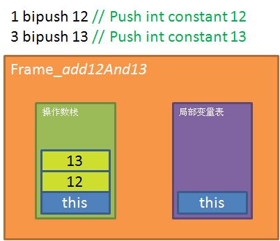 STEP2: 将常量12和13分别push到操作数栈