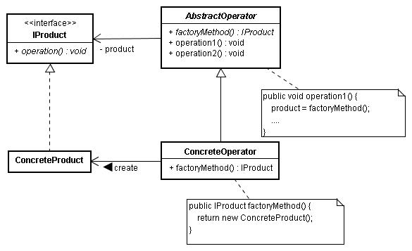 Factory Method模式在一个抽象类中留下某个创建元件的抽象方法没有实作,其它与元件操作相关联的方法都先依赖于元件所定义的介面,而不是依赖于元件的实现,当您的成品中有一个或多个元件无法确定时,您先确定与这些元件的操作介面,然后用元件的抽象操作介面先完成其它的工作,元件的实作(实现)则推迟至实现元件介面的子类完成,一旦元件加入,即可完成您的成品。