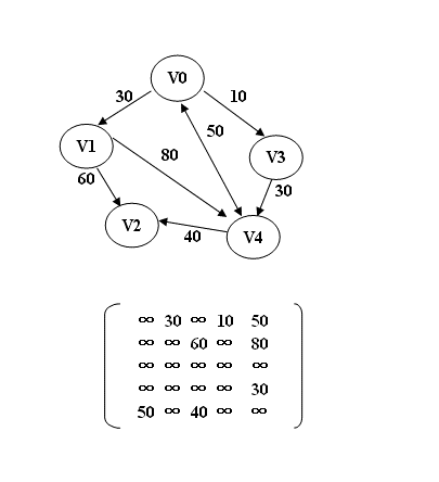 import java.util.ArrayList;import java.util.List;public class FloydInGraph {/** * 图邻接矩阵 最短路径弗洛伊德算法 */private static int INF=Integer.MAX_VALUE; //dist[i][j]=INF<==>no edges between i and jprivate int[][] dist; //the distance between i and j.At first,dist[i][j] is the weight of edge [i,j] private int[][] path; private List<Integer> result=new ArrayList<Integer>();public static void main(String[] args) {FloydInGraph graph=new FloydInGraph(5);int[][] matrix={{INF,30,INF,10,50},{INF,INF,60,INF,INF},{INF,INF,INF,INF,INF},{INF,INF,INF,INF,30},{50,INF,40,INF,INF},};int begin=0;int end=4;graph.findCheapestPath(begin,end,matrix);List<Integer> list=graph.result;System.out.println(begin+" to "+end+",the cheapest path is:");System.out.println(list.toString());System.out.println(graph.dist[begin][end]);}public void findCheapestPath(int begin,int end,int[][] matrix){floyd(matrix);result.add(begin);findPath(begin,end);result.add(end);}public void findPath(int i,int j){int k=path[i][j];if(k==-1)return;findPath(i,k);result.add(k);findPath(k,j);}public void floyd(int[][] matrix){int size=matrix.length;//initialize dist and pathfor(int i=0;i<size;i++){for(int j=0;j<size;j++){path[i][j]=-1;dist[i][j]=matrix[i][j];}}for(int k=0;k<size;k++){for(int i=0;i<size;i++){for(int j=0;j<size;j++){if(dist[i][k]!=INF&&dist[k][j]!=INF&&dist[i][k]+dist[k][j]<dist[i][j]){//dist[i][k]+dist[k][j]>dist[i][j]-->longestPathdist[i][j]=dist[i][k]+dist[k][j];path[i][j]=k;}}}}}public FloydInGraph(int size){this.path=new int[size][size];this.dist=new int[size][size];}}