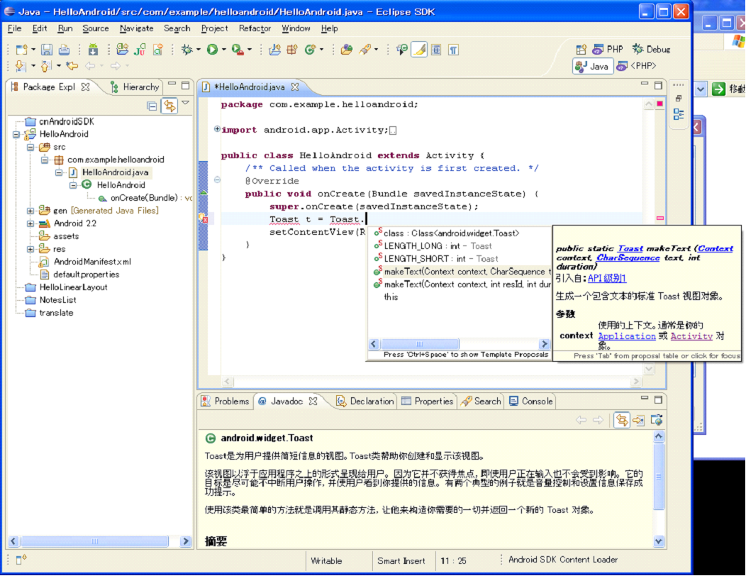 7、在编程的过程中,eclipse就可以自动找到中文的Javadoc说明了