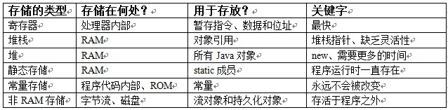 4、静态存储:这里的“静态”是指“位于固定位置”(尽管也在RAM里)。静态存储里存放程序运行时一直存在的数据。可用关键字static来标识某个对象的特定元素是静态的。但Java对象本身永远都不会置入静态存储空间。