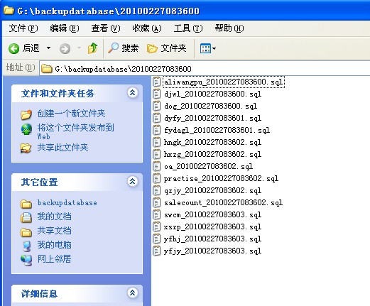 package com.djwl.tools.database;import java.io.BufferedReader;import java.io.File;import java.io.FileOutputStream;import java.io.InputStream;import java.io.InputStreamReader;import java.io.OutputStreamWriter;import java.util.ArrayList;import java.util.Calendar;import java.util.List;/** * 描述:批量备份数据库 * * 1. 修改数据库链接:ip、username、password * 2. 修改输出的文件夹:outputPath * 3. 修改getDatabaseList(),加入你的数据库名称 * 4. 保证你配置了mysql的环境变量 * * @author 胡晓 http://huxiao.iteye.com/ kskr@qq.com QQ:376665005 * * 原文链接:http://huxiao.iteye.com/admin/blogs/604093 * 转载请保留作者信息 */public class BackUpMysql {private static String ip = "localhost";private static String username = "root";private static String password = "root";//输出文件夹,我加了一个时间,保证每次生成在不同的文件夹里面,避免多次备份的文件在同一个文件夹里面,影响视听private static String outputPath = "g:/backupdatabase/" + getCurrentDate14() + "/";/** * <p>功能描述:备份数据库</p> * * @param databaseName * @param outputPath * @author 胡晓 <BR> kskr@qq.com <BR> * 时间:Feb 27, 2010 8:34:24 AM <BR> */public static void backup(String databaseName) {try {Process process = Runtime.getRuntime().exec("mysqldump.exe -h" + ip + " -u" + username + " -p" + password + " " + databaseName);InputStream input = process.getInputStream();InputStreamReader xx = new InputStreamReader(input, "utf8");String inputString;StringBuffer sb = new StringBuffer("");String outputString;BufferedReader br = new BufferedReader(xx);while ((inputString = br.readLine()) != null) {sb.append(inputString + "\r\n");}outputString = sb.toString();FileOutputStream output = new FileOutputStream(outputPath + databaseName + "_" + getCurrentDate14() + ".sql");OutputStreamWriter writer = new OutputStreamWriter(output, "utf8");writer.write(outputString);writer.flush();input.close();xx.close();br.close();writer.close();output.close();} catch (Exception e) {System.out.println("备份出错");e.printStackTrace();}}/** * <p>功能描述:创建文件夹</p> * * @param path * @author 胡晓 <BR> kskr@qq.com <BR> * 时间:Feb 27, 2010 8:48:27 AM <BR> */public static void createFolder(String path) {try {File file = new File(path);if (!file.exists()) {file.mkdirs();}} catch (Exception e) {System.out.println("创建文件夹出错");e.printStackTrace();}}/** * <p>功能描述:生成之后自动打开所在文件夹</p> * * @param folderPath * @author 胡晓 <BR> kskr@qq.com <BR> * 时间:Feb 27, 2010 8:48:37 AM <BR> */public static void openFolder(String folderPath) {try {// 打开所在文件夹String path = folderPath.replaceAll("/", "\\\");String cmd[] = { "explorer.exe", path };Runtime.getRuntime().exec(cmd);} catch (Exception e) {System.out.println("打开文件夹“" + folderPath + "”出错");e.printStackTrace();}}/** * <p>功能描述:获取14位的当前时间</p> * * @return * @author 胡晓 <BR> kskr@qq.com <BR> * 时间:Feb 27, 2010 8:47:36 AM <BR> */public static Long getCurrentDate14(){return Long.parseLong(new SimpleDateFormat("yyyyMMddhhmmss").format(new Date()).toString());}/** * <p>功能描述:获取数据库列表</p> * * 这里的数据库列表实际上是可以从mysql自带的information_schema数据库中的tables表中读出来的,如果你懒得像我这样一一列举,可以采取那种方式 * @return * @author 胡晓 <BR> kskr@qq.com <BR> * 时间:Feb 27, 2010 8:48:58 AM <BR> */public static List<String> getDatabaseList() {List<String> list = new ArrayList<String>();list.add("aliwangpu");list.add("djwl");list.add("dog");list.add("dyfy");list.add("fydagl");list.add("hngk");list.add("hxzg");list.add("oa");list.add("practise");list.add("qzjy");list.add("salecount");list.add("swcm");list.add("xszp");list.add("yfhj");list.add("yfjy");return list;}public static void main(String[] args) {createFolder(outputPath);for (String databaseName : getDatabaseList()) {backup(databaseName);}openFolder(outputPath);}}