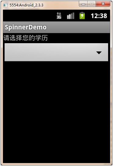 这里放置了一个空的Spinner,直接运行程序,我们看到如下效果: