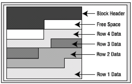 在一个新的块保存了新的第四行数据,然后在原始块保存了新地址的连接。这就是行迁移的过程。