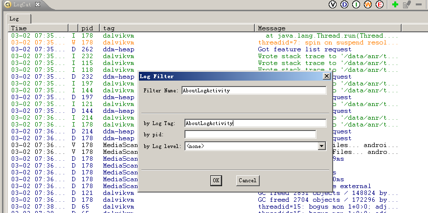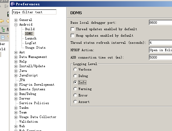 首先我们将eclipse的android的控制台的日志输出等级设置为infor