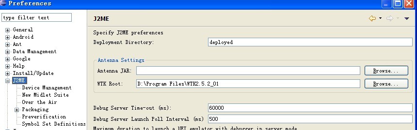 配置下图的WTK Root 为刚才安装的WTK安装位置,如:D:\Program Files\WTK2.5.2_01