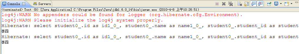 可以看到只执行了一条SQL语句, studentDao.findById("4028810027d8be080127d8be0d790003");这句代码的查询并没有执行.当Hibernate执行完了Query query = session.createQuery("from Student")类似于这种查询以后,会将查询结果存放起来,Hibernate存放的时候会这样存放map.put(“复杂的key值”, 对象的Id),所以当你执行按ID查询时,就会先从缓存中查询,这时就会被命中了.