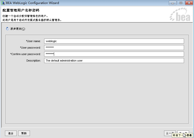 注意事项:一般默认密码为:weblogic,当然你可取任意的密码,请记住这个密码呀