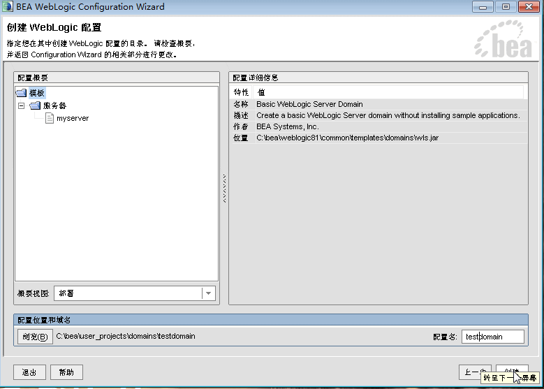 一 创建Weblogic81域(如下图)