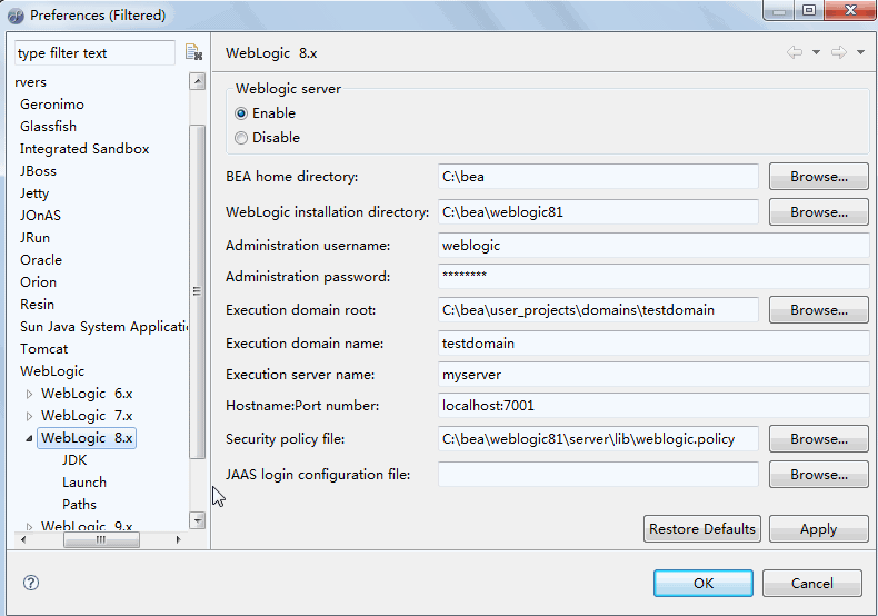 四 Myeclipse与Weblogic81的关联配置