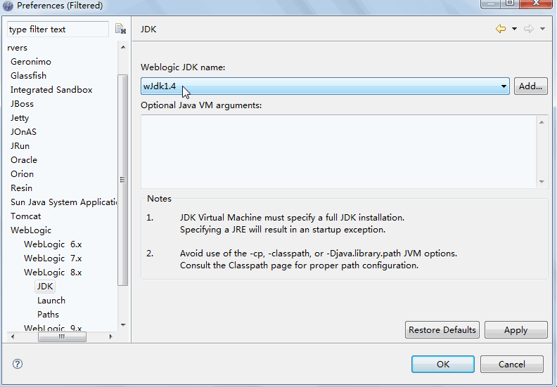 Weblogic81-JDK的设置(请注意和工程中配置的JDK一致)
