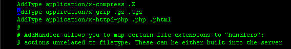 通过“/”来查找到AddType application/x-gzip .tgz,这里需要注意的是,不是带有的注意标记的#,在找到AddType application/x-gzip .tgz的后面添加如图所示文件: