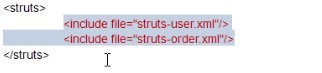 4.关于struts.xml的拆分,见下图,看了你就很明白了,同样修改struts.xml: