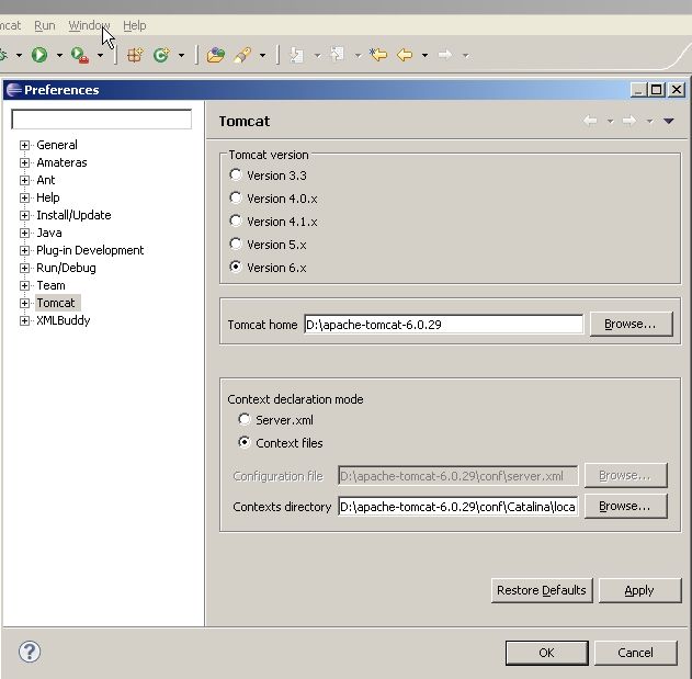 然后启动eclipse,然后在window菜单下的perferences选项里就会出现tomcat的一个配置项,如附件tomcat1.jpg文件;