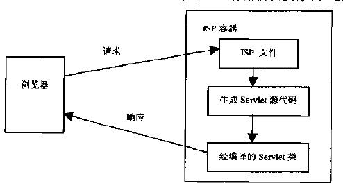 当JSP容器接收到Web用户的一个JSP文件请求时,它对JSP文件进行语法分析并生成Java Servlet源文件,然后对其编译。一般情况下。Servlet源文件的生成和编译仅在初次调用JSP时发生。如果原始的JSP文件被更新,JSP容器将检测所做的更新,在执行它之前重新生成Servlet并进行编译。