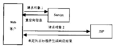 显示一个Servlet把请求重定向给另一个JSP组件的过程: