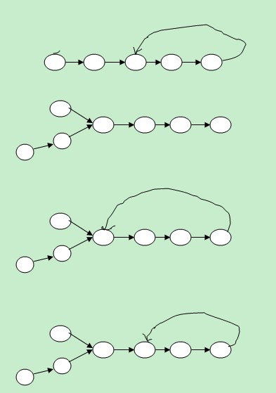 solution1 将A链表的环断开,变成两个无环链表求相交的第一个点(相交的第一个点与环入口点可能不是同一个点,求环入口点就按单个有环链表求入口点一样)