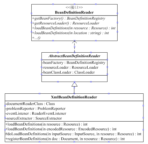 protected void loadBeanDefinitions(DefaultListableBeanFactory beanFactory) throws IOException {// Create a new XmlBeanDefinitionReader for the given BeanFactory.XmlBeanDefinitionReader beanDefinitionReader = new XmlBeanDefinitionReader(beanFactory);// Configure the bean definition reader with this context's// resource loading environment.beanDefinitionReader.setResourceLoader(this);beanDefinitionReader.setEntityResolver(new ResourceEntityResolver(this));// Allow a subclass to provide custom initialization of the reader,// then proceed with actually loading the bean definitions.initBeanDefinitionReader(beanDefinitionReader);loadBeanDefinitions(beanDefinitionReader);}
