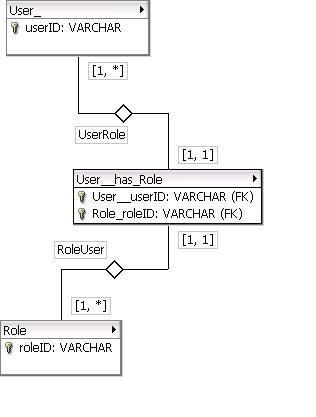 在前面的数据 schema 中,User 和 Role 由 User_has_Role 通过 many-to-many 关系关联调用。为了获取某个 User 所有的指派角色,我们进行如下映射:
