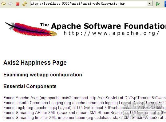 点击Validate,将到达 Axis2 Happiness Page。