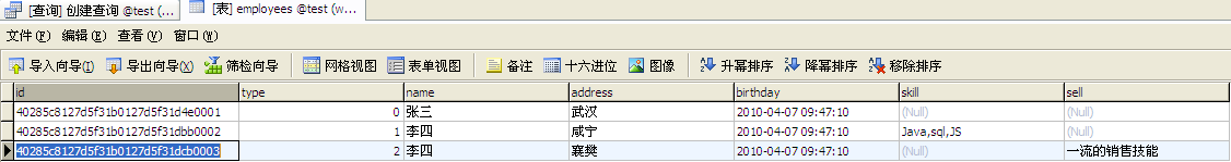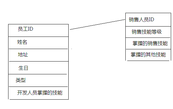 ID姓名地址生日开发人员技能销售人员技能员工类型