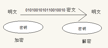 对称加密:密钥只有一个,加密解密为同一个密码,且加解密速度快,典型的对称加密算法有DES、AES等,示意图如下: