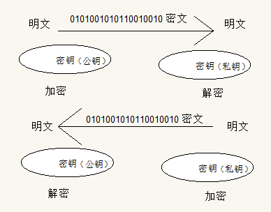非对称加密:密钥成对出现(且根据公钥无法推知私钥,根据私钥也无法推知公钥),加密解密使用不同密钥(公钥加密需要私钥解密,私钥加密需要公钥解密),相对对称加密速度较慢,典型的非对称加密算法有RSA、DSA等,示意图如下: