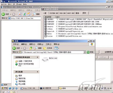 可能已经有些读者会想到修改注册表。那么恭喜你,答错了!因为杀毒软件会监控注册表,这样做不是虎口拔牙么?我们的原则是要“悄悄的”。推荐的想法是:在 windows系统里有些特殊文件夹,启动系统时会自动执行目录下的文件,比如“C:\Documents and Settings\All Users\「开始」菜单\程序\启动”目录。这样,我们的思路就清晰了,首先使用Ajax技术默默的下载木马,然后悄悄的复制到这个目录里,如果你够狠还可以顺便弹出消息框“对不起!您的操作系统产生严重错误,为您带来不便,为了避免重要文件丢失,请立刻手动重新启动系统!”。