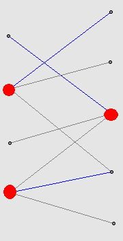 如图红点为最小覆盖顶点,有3个,除了这三个点以外的点所组成的集合就是最大独立集,两两之间无任何关系