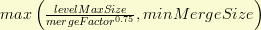 让我们看一下组(level)是如何被构造的。为确定第一个组,算法会查询最大合并段大小,我们叫它levelMaxSize。如果这个值小于minMergeSize,那么所有的段都会被归为一个组。否则,levelMaxSize的值将为:
