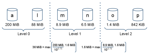通过这个计算,算法将会选择哪些段属于当前的组。首先,它讲找一个大于或等于levelMinSize的段,如果其他旧的段都比它小,则被归为一个组。下一个组也会使用相同的方式,但是会找比上一个段更新的段作为比较段。