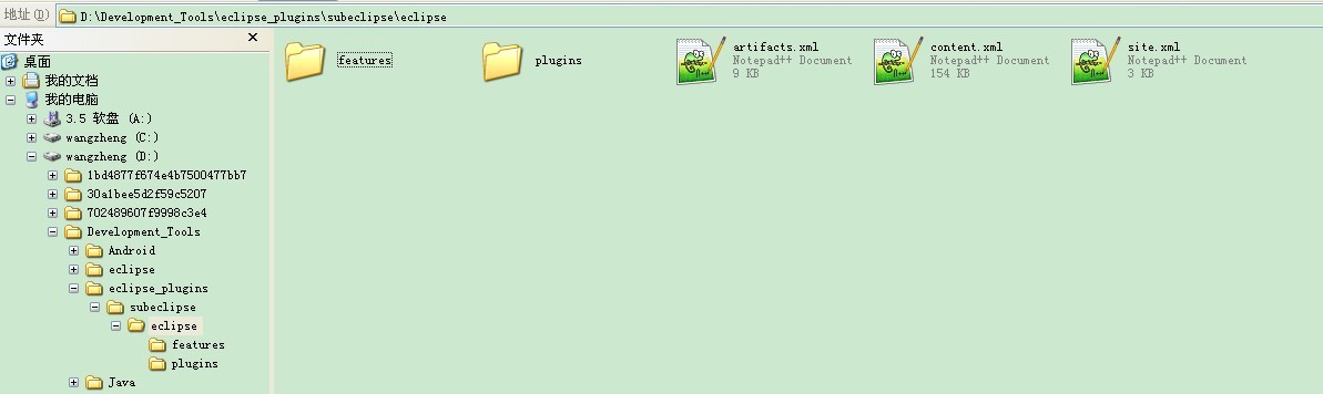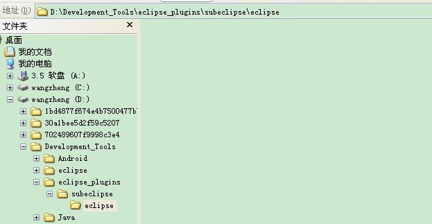 接着,把 subeclipse 插件的压缩包解压至此目录下,请注意目录结构: