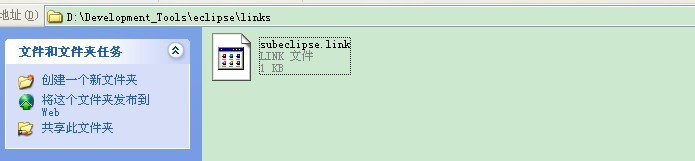接下来,在 eclipse 的安装目录中建立 links 子文件夹(此文件夹一般都是不存在的),并在该子文件夹中,新建一个名叫 subeclipse.link 的文件(其实只要是一个文本文件就行,文件名和扩展名都无所谓),文件内容只要一句话即可(注意内容中,路径分隔符要么使用 \\ ,要么使用 /):