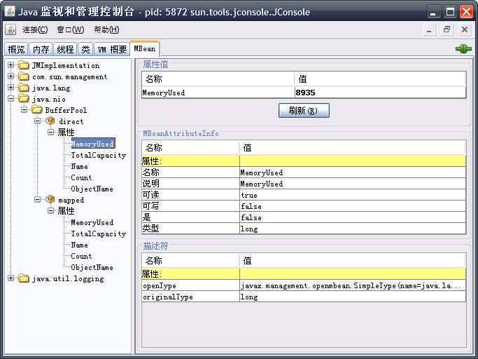 2. objectName: java.nio:type=BufferPool,name=mapped