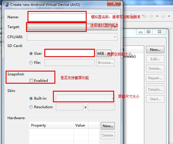 androd模拟器的创建 1.打开eclipse,依次点击菜单:window->AVD manager,弹出AVD管理框,如下图2.选中创建好的模拟器,点击start,再在弹出界面中点击lunch,运行。