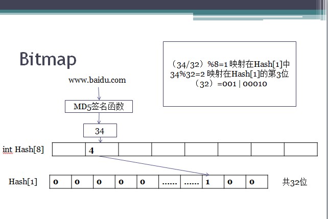 拿java为例,一个Int类型的数占了4个字节(B),即32位(bit),如果建立一个存放整型数据且长度为8的hash表,则需要32字节,共256位。如果采用传统的hash表使用方式,长度为8的哈希表,最多只能存放8条互不相同的记录。