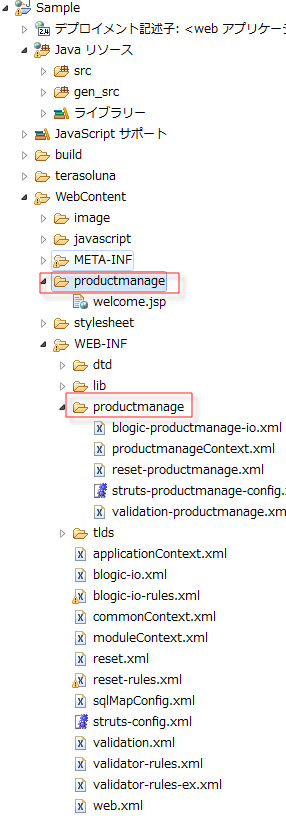 一步步完成后工程就建完成了。一般项目开发都是有好多业务块组成的,所以Terasoluna它有自己的方法来搭建业务。