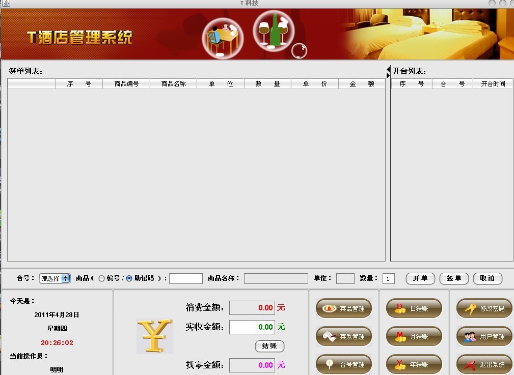 酒店管理系统总界面(swing)