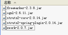 2.导入struts2的核心jar包,也就是在WEB-INF下的lib文件夹中放入jar包文件,如下图(图中jar包为示例版本):