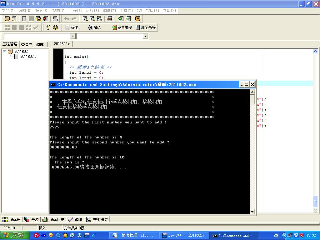 /* 说明:本程序是关于任意长浮点型数或者整数相加的程序。*/